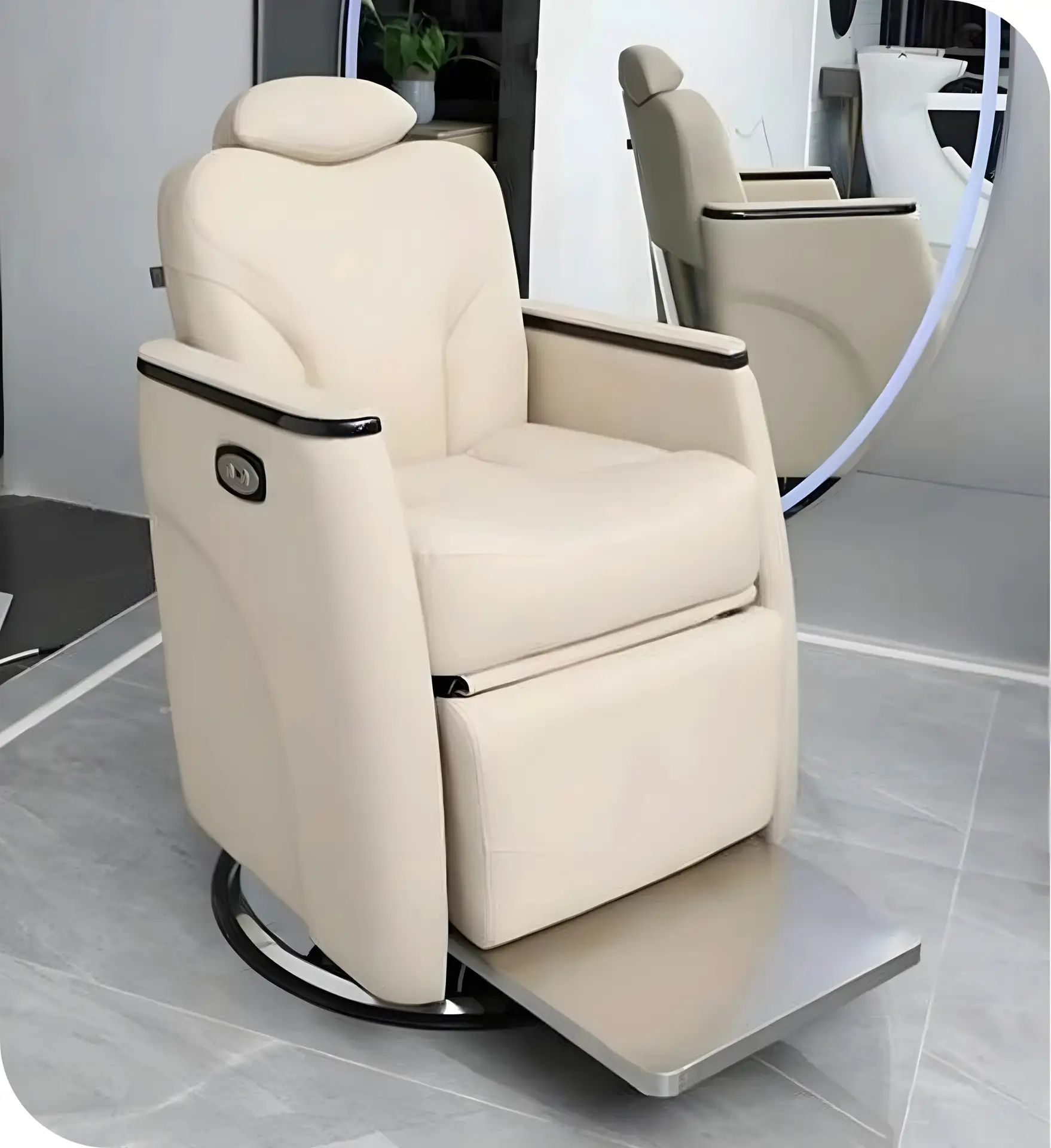An electronic premium chair, that becomes a bed with a touch of a single button. Specially designed for hair rituals, head massage, face massage, facial treatments and others. Comes with electrically controlled footrest & back reclining Suitable for all the VIP sections and K- room. Discover the comfort like never before.